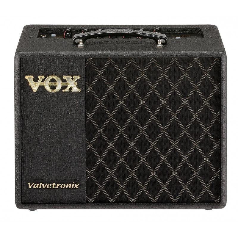 AMPLIFICATEUR COMBO GUITAR VOX VT20X Amplificateur série VTX avec valve sur le préampli. Puissance: Maximum env. 20 W RMS @ 5 ohms. Modèles d'amplis: 11/20 (en utilisant le logiciel Tone Room - Editeur / Bibliothèque) DELUXE CL, TWEED 4x10, VOX AC30, BOUTIQUE OD, VOX AC30TB, BRIT 800, BRIT OU MKII, DOUBLE REC, BOUTIQUE CL, BRIT 1959, BOUTIQUE METAL . Effets: Type de pédale 1: 4 (COMP, CHORUS, OVERDRIVE, DISTORTION) Type de pédale 2: 4 (FLANGER, PHASER, TREMOLO, DELAY) Type de réverbération: 4 (ROOM, SPRING, HALL, PLATE) Réduction du bruit: 1. Programmes: 33/60 (à l'aide du logiciel Tone Room - Editor / Library). Programmes utilisateur: 8 (2 banques x 4 canaux). Haut-parleur: 8 'à 5 ohms. Entrées / Sorties: INPUTjack, prise AUX IN, prise casque, prise FOOT SW, mini-port USB (Type B). Traitement du signal: conversion A / DD / A: 24 bits. Alimentation: adaptateur secteur (DC 12V). Consommation: 2,50 A. Dimensions (L x P x H): 410 x 225 x 347 mm. Poids: 7,3 kg. Éléments inclus: adaptateur secteur. Accessoires (vendus séparément): pédale VFS5
