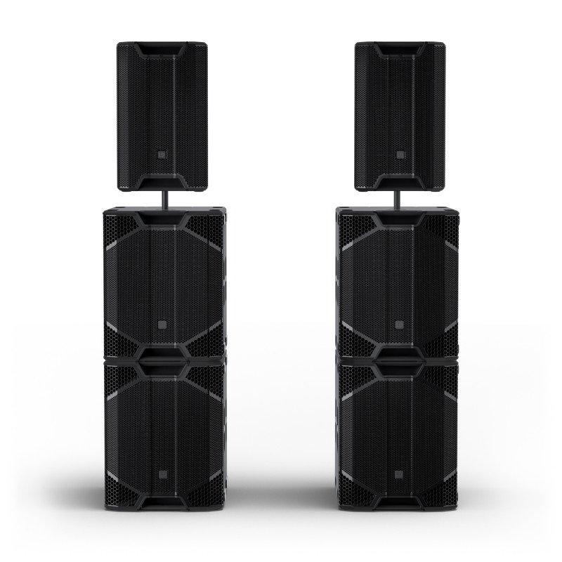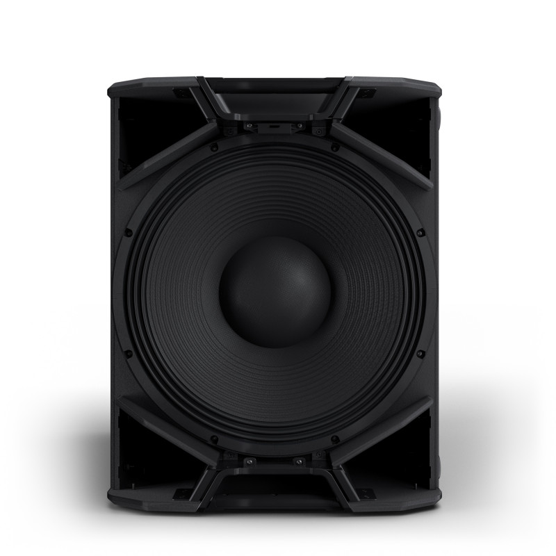 Le puissant amplificateur en classe D intégré développe jusqu'à 1500 W efficaces (3000 W crête), pour un niveau sonore maximal de 136 dB SPL, ce qui assure une énorme réserve dynamique et des performances fiables dans le bas du spectre. Les quatre évents bass-reflex surdimensionnés, optimisés pour un écoulement sans turbulences de l'air, assurent un grave présent jusqu'à 29 Hz.