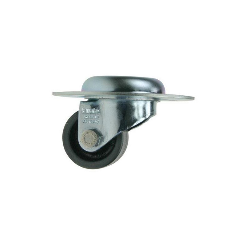 La ruota senza cuscinetto a sfera è realizzata in PA antiurto. La ruota è montata in un piatto di montaggio zincato in acciaio profondo 10 mm, in modo che dopo il montaggio, la distanza dal suolo sia di soli 41 mm.