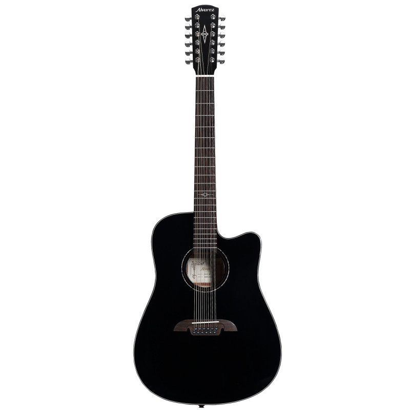 12 CHITARRA ELETTROACUSTICA CUTAWAY Chitarra acustica elettrificata a 12 corde. Corpo da corazzata. Top in abete Sitka massiccio A+. Manico in mogano. Fasce e fondo in mogano africano. Costruzione FS6. Ponte a due livelli in palissandro e alloro indiano. Tastiera in palissandro e alloro indiano. Capotasto e sella in vero osso. Teste della macchina cromate pressofuse di alta qualità. 21 tasti. Scala 25'5". Rilegatura ABS avorio. Sistema di amplificazione LR Baggs StagePro EQ con pickup Element. Corde D'Addario EXP38. Finitura nera lucida. Include fondina AGB-15.