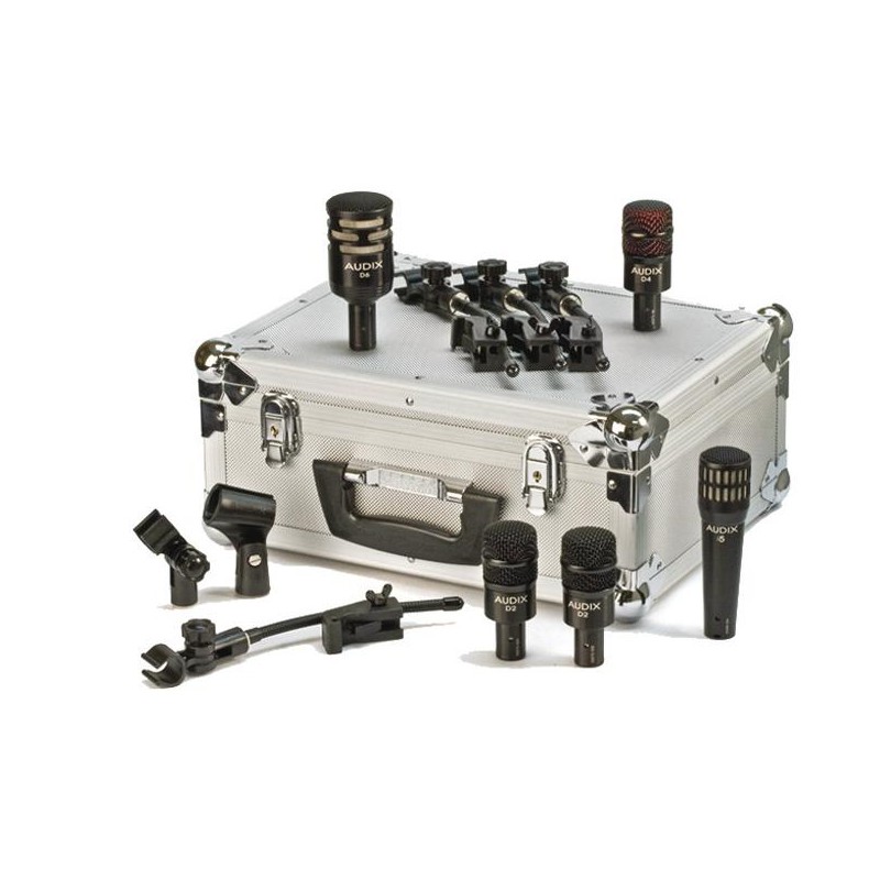 SET MICROFONO PER BATTERIA Confezione di microfoni per batteria. Applicazione per live e studio di registrazione. 1 micro i5 per rullante, 2 Micros D2 per Tom, 1 Micro D4 per Goliath 1 micro D6 per grancassa, 4 pinzette a D-Vice. Valigia da strada rigida in alluminio.