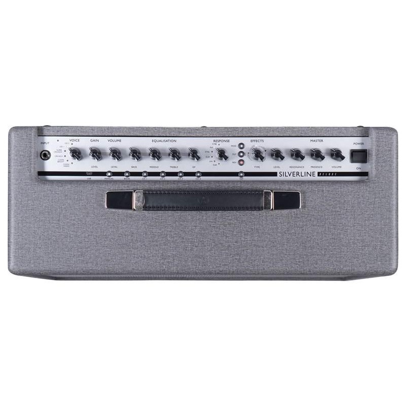 AMPLIFICATORE COMBO PER CHITARRA SILVERLINE STEREO DELUXE Amplificatore combo digitale stereo programmabile da 200 W per chitarra elettrica. La classica tecnologia True Valve Power con il nuovo DSP `` SHARC ''. 6 voci (Clean Warm, Clean Bright, Crunch, Super Crunch, OD 1, OD 2). ISF (Infinite Shape Feature). 128 banchi di memoria con 4 memorie (CH1, 2, 3 e 4). Effetti incorporati. Emulatore di valvola con 6 tipi di valvola. Controlli EQ Bass, Middle e Treble. Master Volume Control, Presence Master e Resonance Master. Porta USB per la registrazione e la modifica tramite software. Ingresso ausiliario per Cd o Mp3. Uscita simulazione altoparlante. Sintonizzatore integrato. 2x altoparlanti Celestion V Type da 12 ''. Rifinito in tolex argento "Boutique Silver" con logo metallico sul davanti. Pedale multifunzione opzionale (FS-10)