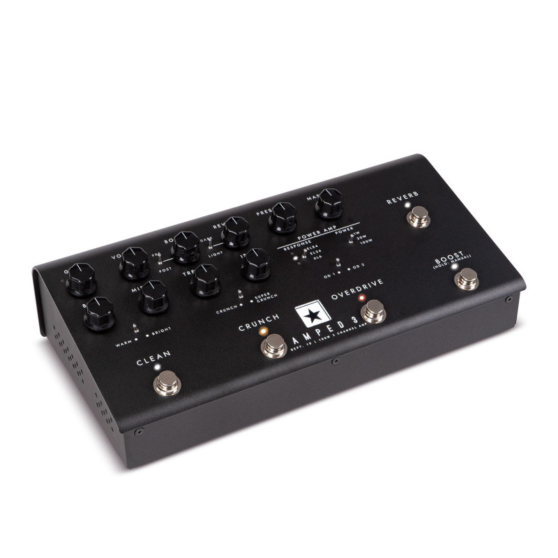 - Amplificatore a pedale da 100W e 3 canali ad alto guadagno.