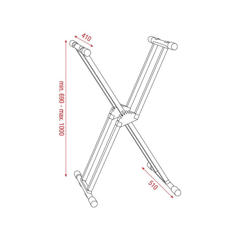 Il vantaggio del supporto tastiera DAP sono i piedini e il braccio staccabili.Sia avvitano e si svitano con facilità servendosi di una chiave esagonale. Dopo essere staccato e piegato, il supporto tastiera è estremamente compatto.