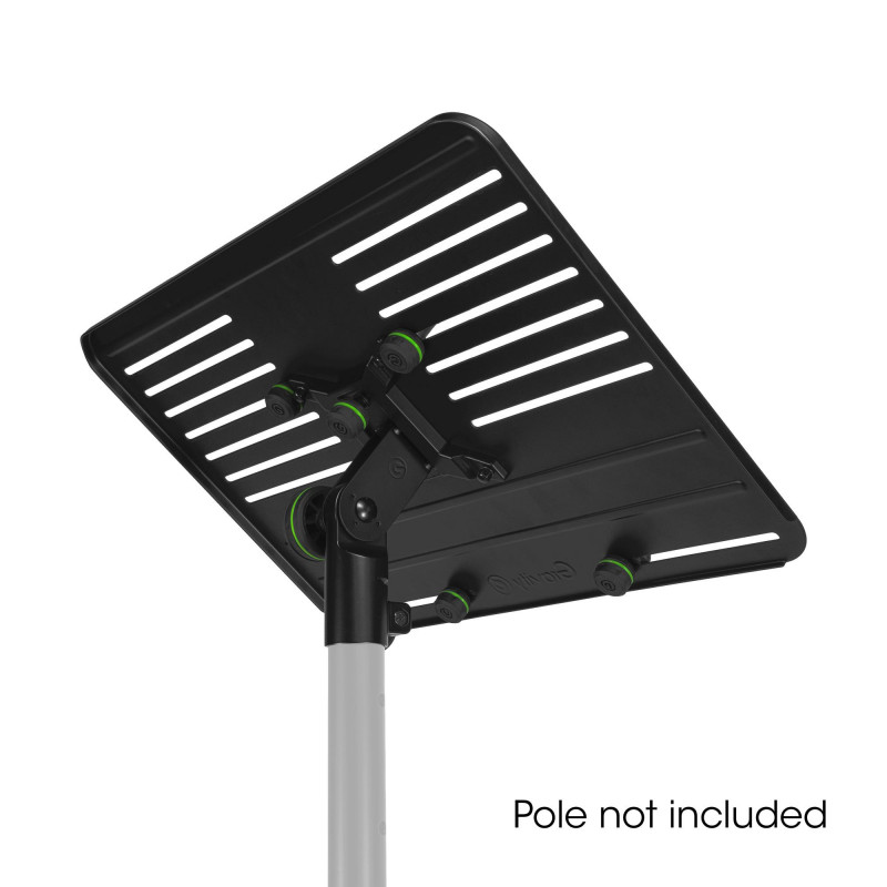 Che lavoriate sul palco, a casa, in studio o sul set di un servizio fotografico, il supporto per laptop Gravity® LTS TRAY 1 trasformerà il vostro supporto per altoparlanti in una postazione di lavoro mobile. Ora il vostro laptop può rimanere saldamente e stabilmente fissato in posizione in qualsiasi momento nei vostri impianti mobili ad alte prestazioni - posizionati proprio come volete voi.