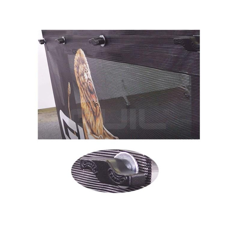 A volte è necessario posizionare rivestimenti che non sono realizzati in tessuto e che a causa del suo peso elevato il velcro non può essere utilizzato; Con i nostri adattatori FLD-01 / N è possibile posizionare sia rivestimenti leggeri (tessuto, tela, ecc.) Sia pesanti (metacrilato, cartone, fogli, ecc.).