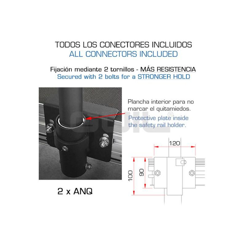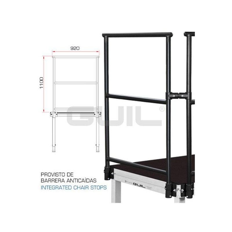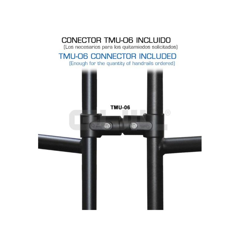 - I quitamiedos TMQ, progettati con una barra di rinforzo e una barriera anticaduta, sono realizzati in alluminio.