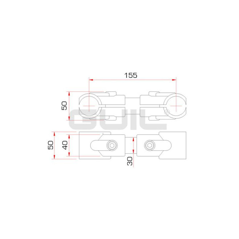 Il sistema TMU-06 è composto da due morsetti metallici con una finitura zincata che può essere regolata per poter unire i dispositivi di rimozione angolati (angoli).