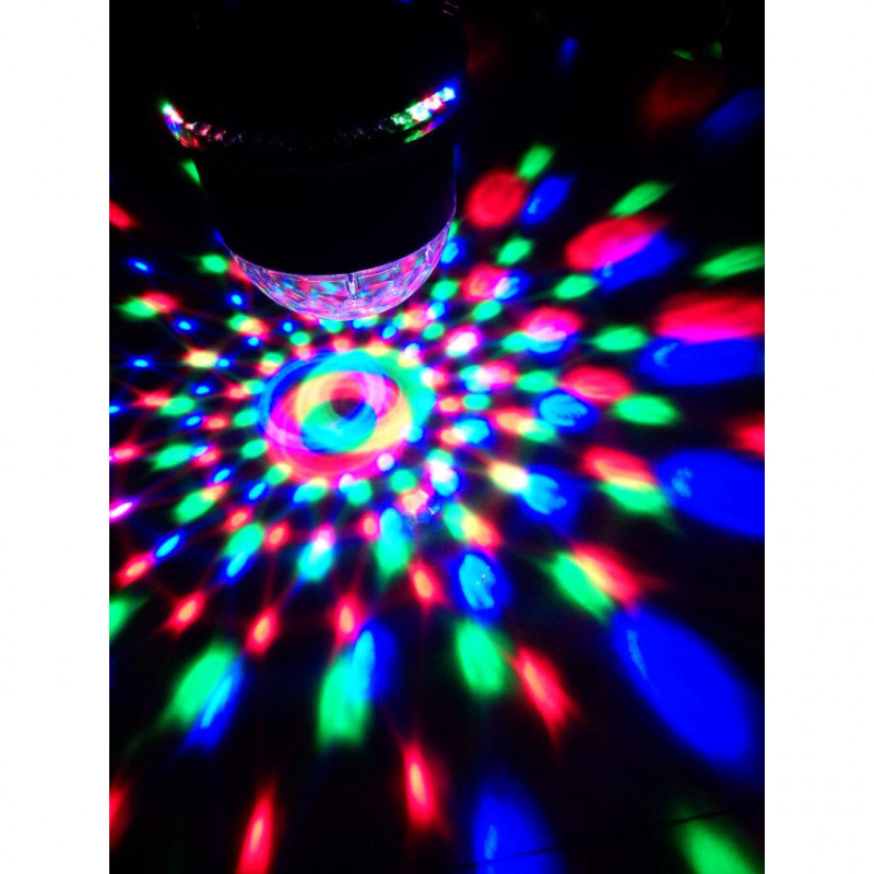 Effetto combinato di un ASTRO e di un UFO da appoggiare su un tavolo o fissare a parete, emette una moltitudine di fasci luminosi sulle pareti dell'intera stanza. È l'intrattenimento ideale per le tue feste in casa, senza bisogno di fastidiose installazioni.