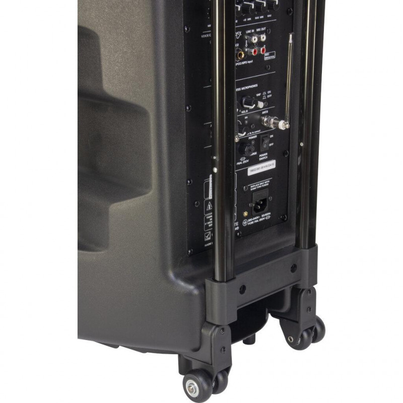 Oltre all'eccezionale qualità del suono per la sua categoria, questo sistema audio portatile presenta importanti vantaggi come l'autonomia, grazie alla batteria ricaricabile integrata e alla doppia alimentazione 220VAC-12VDC, la sua versatilità con il suo carrello retrattile e le sue ruote, la libertà di movimenti grazie al suo micro VHF portatile e un'altra testa, il multi sorgente grazie ai suoi numerosi ingressi e uscite e alla sua porta USB/SD/MMC-MP3, oltre a molti altri vantaggi.
