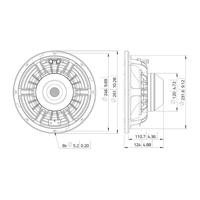 300 W AES, 8 ohm, 97 dB, 75-4500 Hz