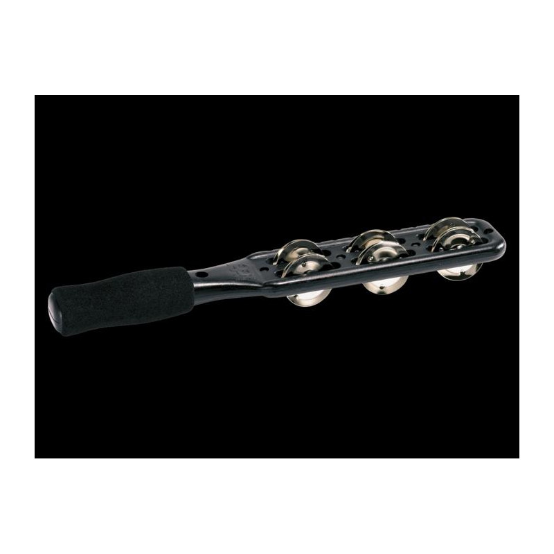 PANDERETA Tamburello con manico e sonagli in acciaio. Offre molte possibilità sonore interessanti con una maniglia imbottita e una superficie simile al guiro.