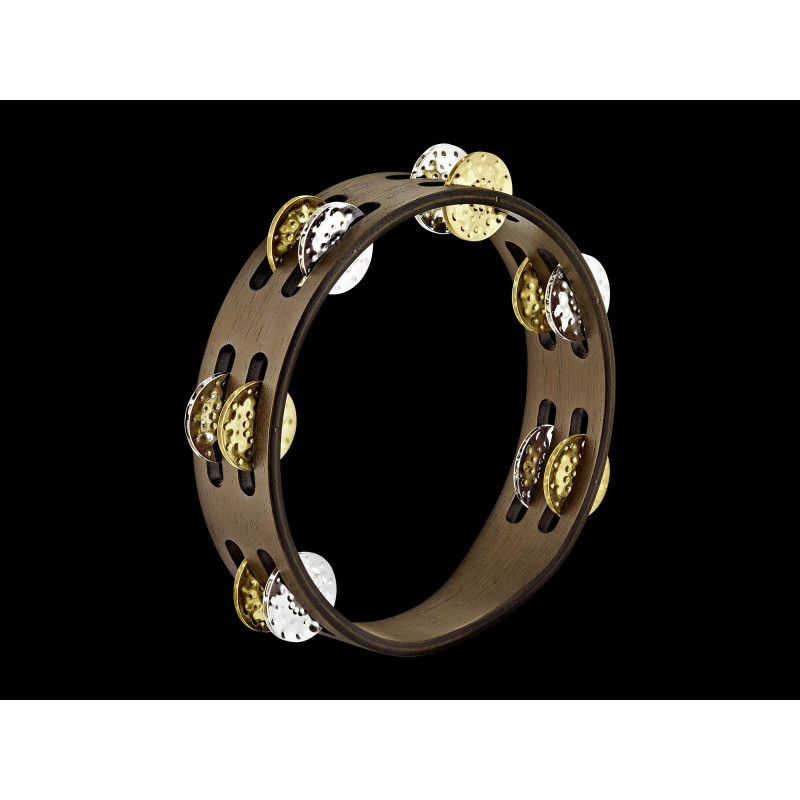 PANDERETA Tamburello con 2 file di sonagli, sonaglio in ottone e acciaio, finitura marrone.
