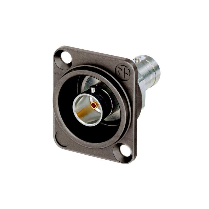 Connettore telaio BNC UHD passante con messa a terra in un alloggiamento a forma di D placcato in antraloy. I connettori telaio UHD BNC Neutrik offrono bassi valori di perdita di ritorno ad alte frequenze specifiche per la trasmissione di segnali video ad alta risoluzione. Il corpo del connettore in ottone lavorato fornisce una connessione estremamente resistente e non abrasiva per un uso a lungo termine ed è inoltre incassato e quindi ben protetto in un alloggiamento a forma di D.