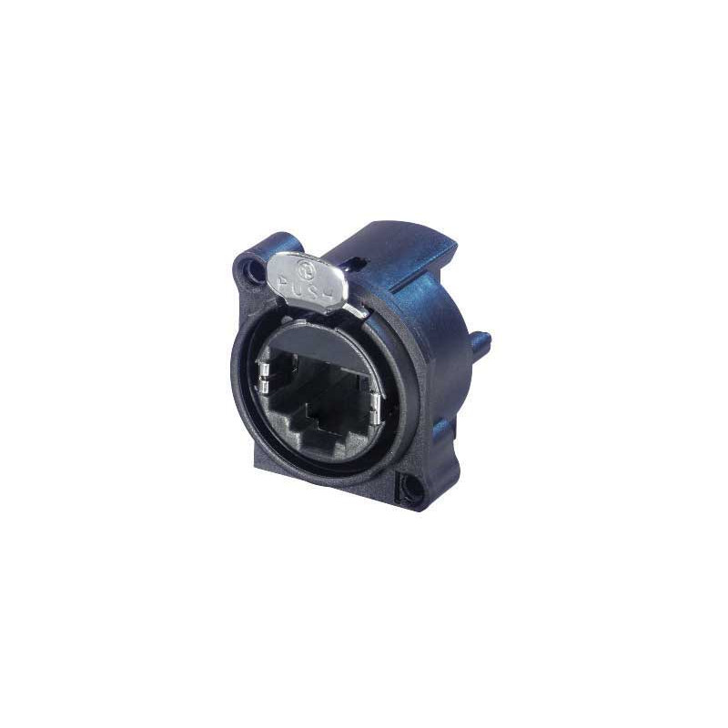 Presa RJ45 con montaggio orizzontale su PCB, con ritaglio serie A e chiusura a scatto, con uno spessore massimo del pannello di 3 mm. La serie etherCON è un sistema di connettori RJ45 robusto e bloccabile, ottimizzato per applicazioni di rete audio, video professionale e illuminazione. I connettori del telaio sono progettati per adattarsi ai pannelli standard del settore dell'intrattenimento. La serie A, realizzata interamente in plastica, offre il design più compatto ed economico. Attenzione! Non compatibile con il connettore del cavo CAT6 NE8MC6-MO e i cavi NKE6S*.