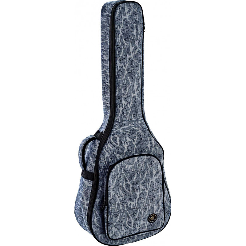 CUSTODIA PER CHITARRA CLASSICA Custodia stampata per chitarra classica con esterno in cotone e interno in nylon. Imbottitura 12 mm. Con cinturini stile zaino. Scomparto frontale. Colore Blu Juean