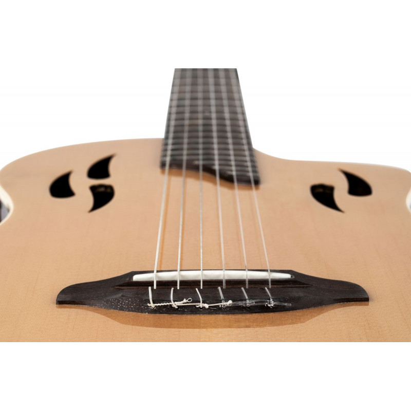 CORDE IN NYLON PER CHITARRA ELETTROACUSTICA La rivoluzionaria chitarra elettrica con corde in nylon TourPlayer è progettata per le esibizioni dal vivo, offrendo il calore e il suono autentico di una chitarra in nylon eliminando i problemi di feedback. Esplora un mondo di possibilità sonore a cui non avresti mai pensato, alle possibilità di una chitarra in nylon. Il TourPlayer combina la bellezza del cavo di nylon con la potenza e l'emozione di una chitarra elettrica, offrendo il meglio dell'innovazione.