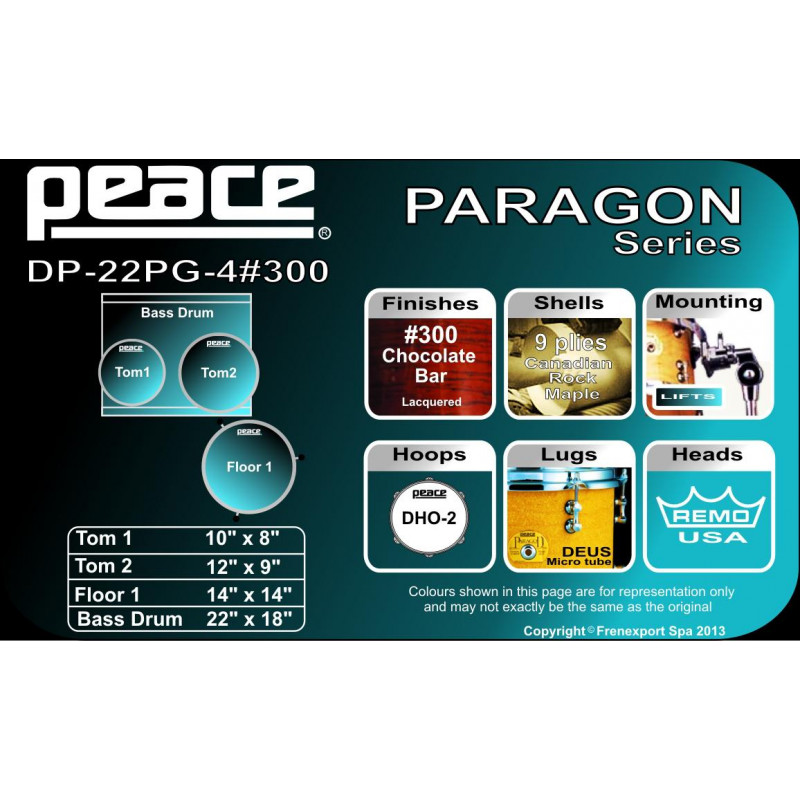 I veri appassionati di batteria scelgono da sempre fusti in Acero. E' per questo che il team Peace ha sviluppato la serie PARAGON, creando fusti in Acero Canadese da 9 strati. Semplicemente "il meglio del meglio". L'ampia gamma di misure e livree disponibili danno al musicista, sia esso professionista o amatore, la possibilit di personalizzare il proprio set in base alle pi disparate esigenze.L'utilizzo dei sistemi brevettati LIFTS"! per il supporto dei toms e delle meccaniche DEUS Microtube"! favoriscono una migliore e facile accordatura nonch la possibilit di cambiare le pelli con il fusto montato all asta.Il look accattivante, il suono superlativo ed una costruzione visibilmente tecnologica rendono la PARAGON una serie che non lascia spazio a compromessi.I pacchetti standard prevedono la fornitura dei soli fusti insieme ai quali possibile ordinare separatamente tutti gli accessori del vasto catalogo Peace.