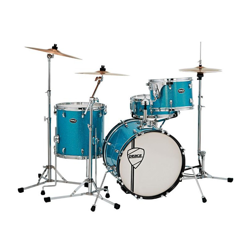 Ispirato al fomoso festival Californiano, la Monterey Jazz series X4 un drumkit completo da 4 pezzi che include tutto ci di cui hai bisogno. MJS equipaggiata con l'hardware Peace retro serie 973 che include un supporto rullante basket-style, un'asta a bilanciere, un'asta diretta, hi-hat e pedale grancassa. I fusti sono 100% in pioppo 9 strati per grancassa e rullante e 6 strati per tomo e timpano. Disponibile in configurazione con grancassa da 18" o 16", viene proposta con 3 finiture sparkle in stile vintage/retr.