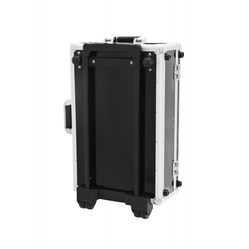 Anche nei tempi dei formati MP3 che sfilano nel campo dei DJ, i CD sono sicuramente presenti, difendendo con veemenza la loro posizione. Del resto, per noi è logico introdurre la nostra nuova custodia per CD. La moda di alta qualità, un sacco di spazio e un grande comfort sono le caratteristiche eccezionali di questo prodotto. Spessore della parete di 3 mm e stabilità grazie al telaio in alluminio spesso 20 mm, che rende la custodia elastica e non sensibile. L'interno è imbottito in spugna e offre spazio per 120 CD. La cover può essere tolta facilmente, quindi la custodia è perfetta per il DJ. Un punto culminante speciale è la maniglia telescopica estendibile. Consente, insieme alle due ruote, un trasporto eccezionalmente facile. Grazie a questo trolley, percorrere lunghe distanze non è più un problema e i CD non saranno un carico spiacevole.