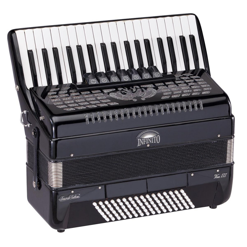 Soundsation presenta la nuova linea di fisarmoniche Infinito. Il nome non stato scelto a caso. Infinito ricorda infatti il nostro territorio, le marche, che vanta di una lunga tradizione e che ha reso la fisarmonica famosa in tutto il mondo. Progettata da un team italiano la fisarmonica Infinito sposta verso l alto l asticella di strumento entry level con un rapporto qualit prezzo senza pari. La gamma completa e disponibile in diverse misure, dalla 48 fino alla 120 bassi.