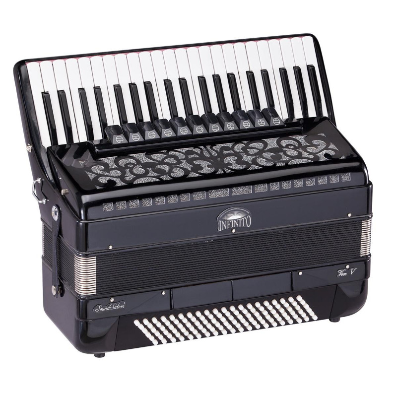 Soundsation presenta la nuova linea di fisarmoniche Infinito. Il nome non è stato scelto a caso. Infinito ricorda infatti il nostro territorio, le marche, che vanta di una lunga tradizione e che ha reso la fisarmonica famosa in tutto il mondo. Progettata da un team italiano la fisarmonica Infinito sposta verso l’alto l’asticella di strumento entry level con un rapporto qualità prezzo senza pari. La gamma è completa e disponibile in diverse misure, dalla 48 fino alla 120 bassi.