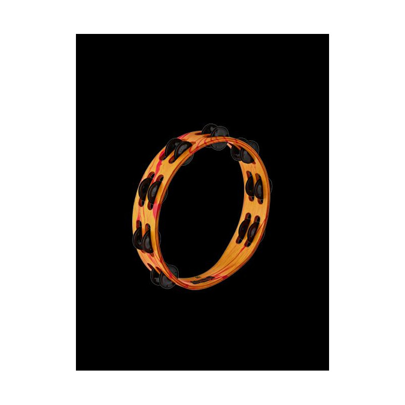 PANDERETA Tamburello, 2 file, finitura marmo rosso / arancio, jingle in acciaio placcato nero