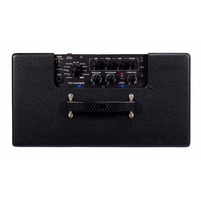 AMPLIFICATORE COMBO PER CHITARRA 'Il VOX Cambridge50 è un amplificatore per chitarra modellante potente e moderno. Alimentato dalla Virtual Element Technology ('' VET '') per offrire suoni realistici e pronti per il palcoscenico. 11 tipi di modelli di amplificatori: DELUXE CL, BOUTIQUE CL, BOUTIQUE OD, VOX AC30, VOX AC30TB, BRIT 1959, BRIT 800, BRIT VM, SL-OD, DOULBE REC, LINE. 8 tipi di effetti: MODULAZIONE (CHORUS, FLANGER, ORG PHASE, TWIN TREM), DELAY / REVERB (A.DELAY, TAPE ECHO, PRIMAVERA, HALL). Altoparlante posteriore aperto dotato di un altoparlante Celestion VX12 da 12 ''. Dotato di Nutube. 50w. Include sintonizzatore, ingresso AUX, uscita cuffie / linea con simulatore di altoparlanti, modalità preimpostata e modalità manuale. Interfaccia audio USB integrata per registrare direttamente il suono NuTube. Software di editor / libreria Tone Room. Pedale VFS2 / VFS5 opzionale. Software di modellazione JamVOX III incluso. Dimensioni: 452 mm x 240 mm x 410 mm. Peso: 8,9 Kg. '