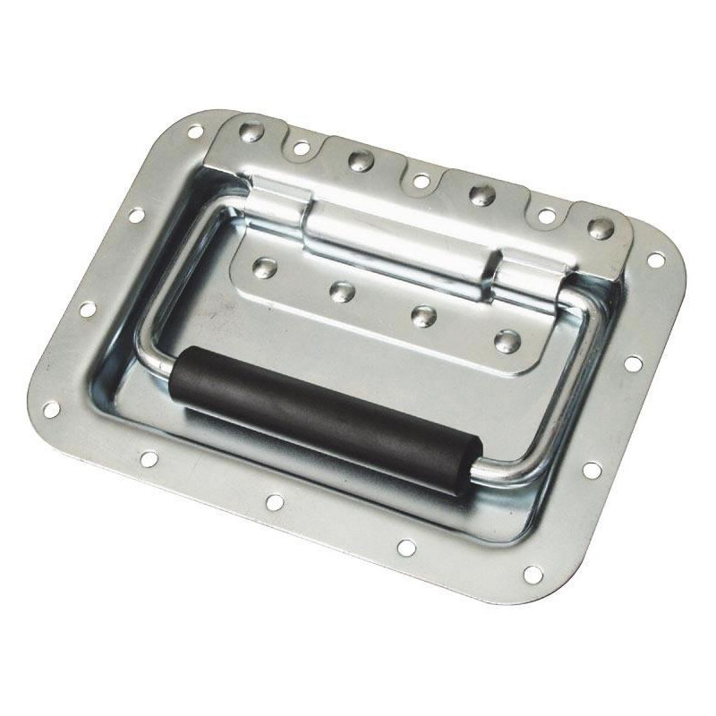 Foldable, galvanized metal handle.