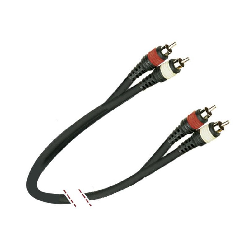 Parallel cable of double connection, special for audio. 2 x male RCA connectors - 2 x male RCA connectors. Color identifier. 1 conductor 20 x 0.12 mm. + mesh. Black color. Length: 1m.