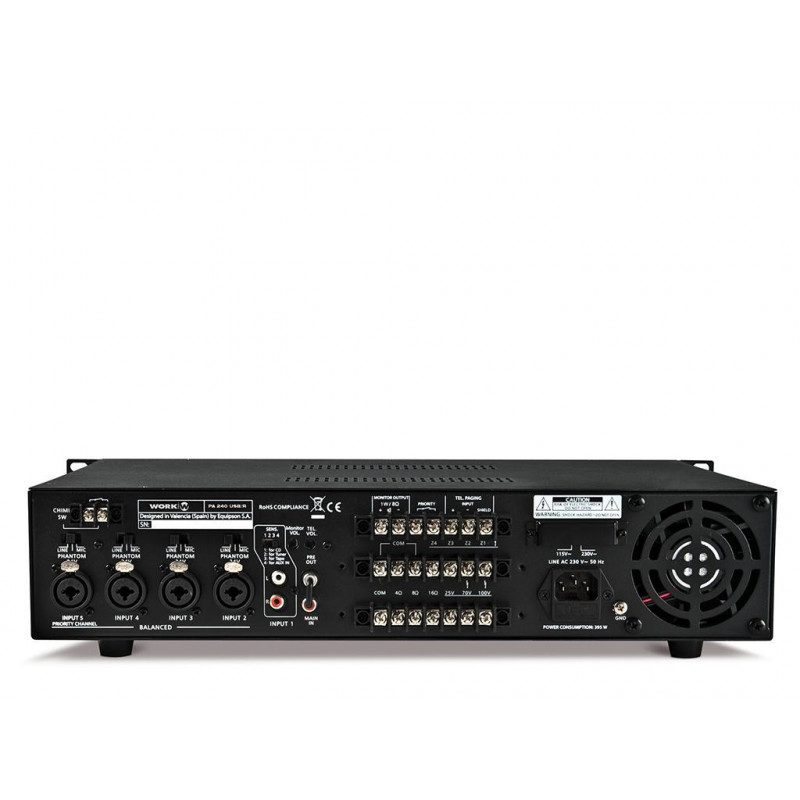 Compatibile con altoparlanti con bassa impedenza (4, 8 e 16 ohm) e alta impedenza (linea 25, 70 e 100 V).