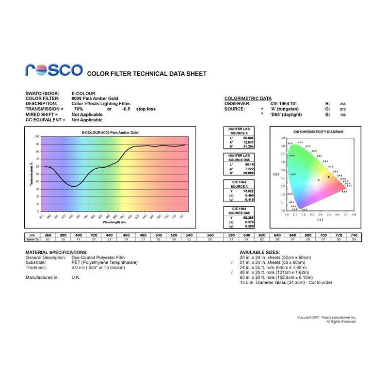 The system filters Rosco European production type of cinema, theater and video. E-Colour + includes different filters and materials for color correction, color effects, diffusion and reflection. They are manufactured with the most modern processes of dyes and adhesives formulation, ensuring the highest possible quality in this type of filters. E-color comes in rolls of 1.22 mx 7.62 m, in sheets of 53 cm x 61 cm and folded sheets of 53 cm x 1.22 m