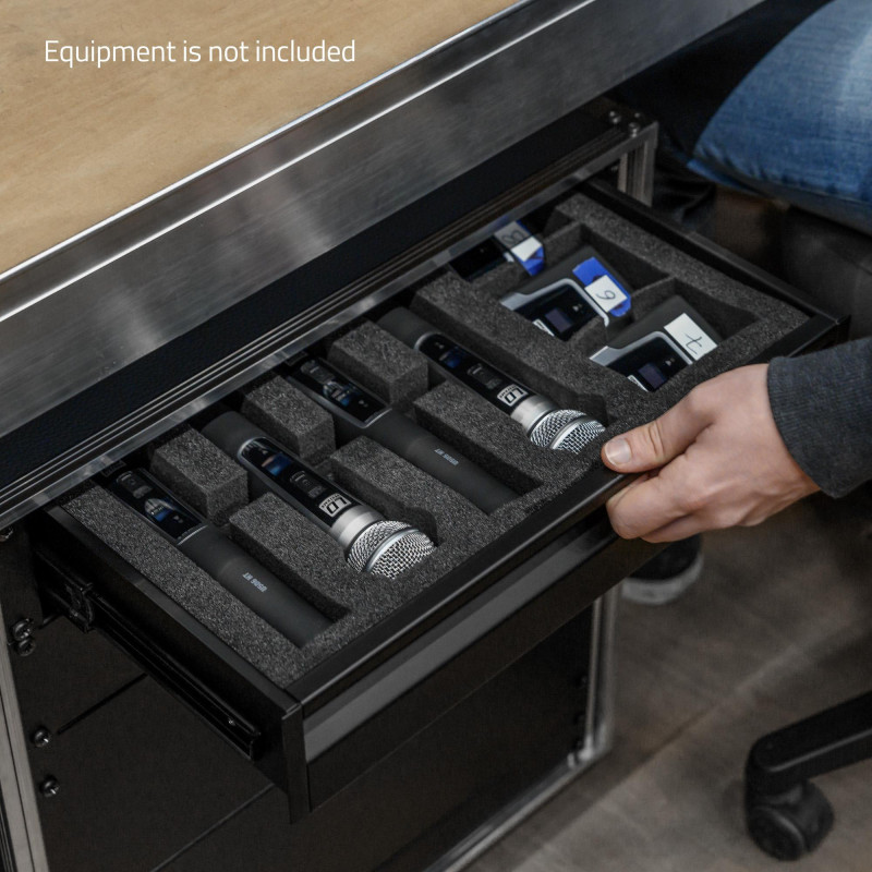 O ERGO é uma gaveta de rack econômica e robusta, feita de alumínio com 1,5 mm de espessura, fácil de manusear e ergonômica. A alça afundada se estende por toda a frente. Ao fechar a gaveta, ela fica travada com segurança, enquanto puxa a alça libera o mecanismo para abrir a gaveta. Isso requer uma força de tração de 1,5 kg. A gaveta do rack é texturizada em preto e tem uma capacidade de carga de 20 kg. Desliza facilmente nas guias telescópicas do rolamento de esferas e pode ser totalmente removido e removido.