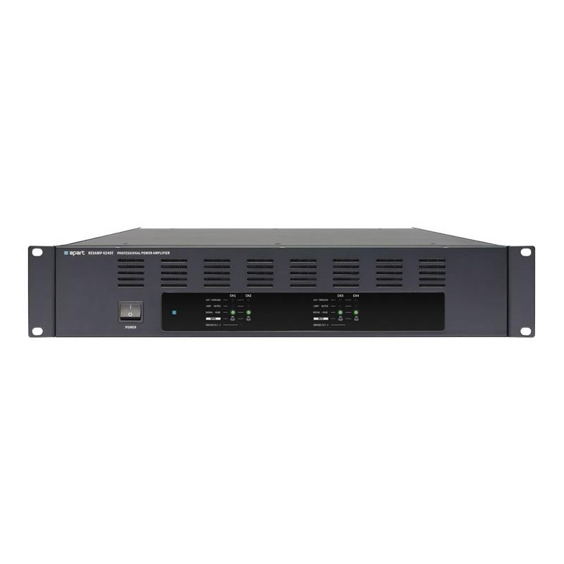 O REVAMP4240T é um amplificador de potência digital, capaz de oferecer 4 x 240 W em 100 V ou mais de 4 ohms. Você também pode trabalhar em bridge mod para oferecer 2 x 480 W em 100 V ou acima de 8 ohms. Ele incorpora a amplificação de alta confiabilidade Hypex, design europeu e fonte de alimentação e saídas com a eficiente classe D e transformadores de saída. O visor intuitivo no painel frontal mostra tudo o que acontece no amplificador e a potência de saída permanece sempre sob controle graças ao limitador de design especial, que impede o som de bombeamento típico do sinal limitado, mantendo o Ao mesmo tempo, o controle sobre o sistema e desfrutando de todo um som altamente dinâmico. O REVAMP4240T é o amplificador ideal para aplicações com 4 zonas em mono, 2 zonas em estéreo ou em sistemas mono ou estéreo no modo bridge. Possui um ventilador inteligente de velocidade variável para resfriamento, que sozinho e ativo quando necessário, de modo que garante que o amplificador permaneça em silêncio o maior tempo possível, evitando também a necessidade de manutenção periódica. A sensibilidade de entrada pode ser adaptada às necessidades de cada caso. O estágio de entrada também possui um filtro HP ajustado para 250 Hz para otimizar o sistema para uso com alto-falantes de corneta.