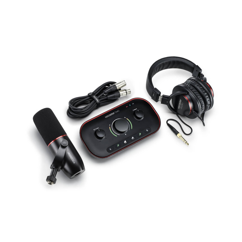 Nosso microfone dinâmico Vocaster DM14v de alta qualidade captura sua verdadeira voz e conecta você ao seu público. Sua ventosa com absorção de choque minimiza o ruído e maximiza a energia. Os fones de ouvido de estúdio fechados HP60v permitem que você ouça seu show como o mundo todo e evita que o microfone capte as mixagens.