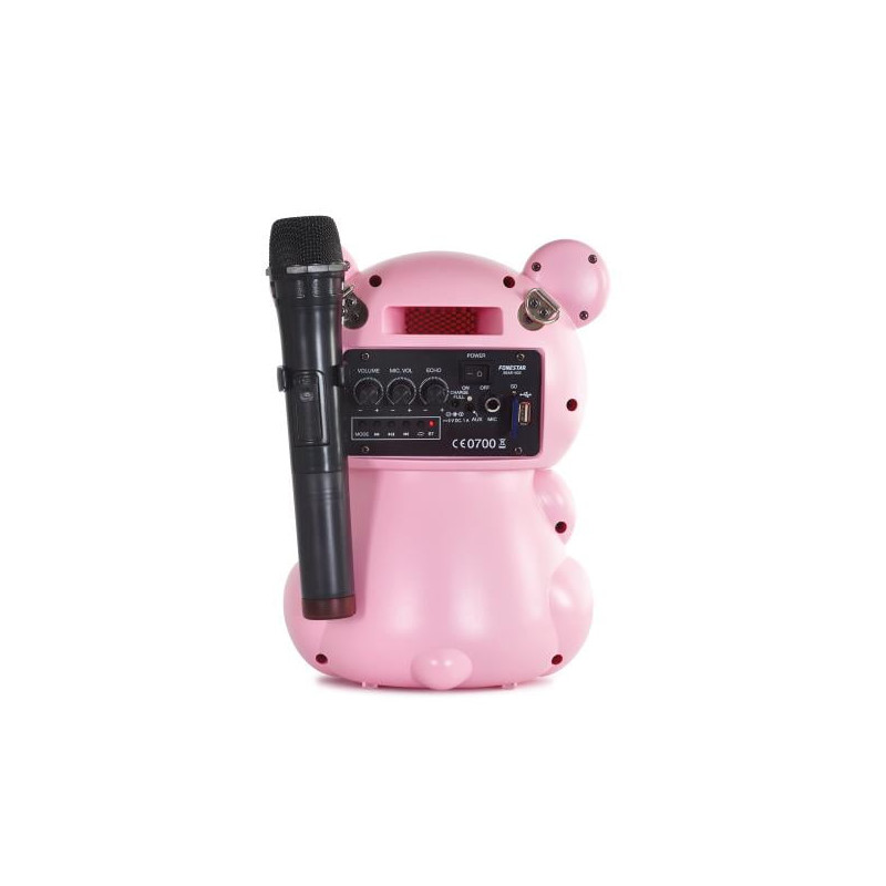 Altifalante portátil de karaoke com bluetooth e leitor USB/SD/MP3. Microfone de mão sem fio e microfone com fio de 2m. Função de karaokê, controle de volume independente de música e microfones. Compatível com aplicativos de karaokê Efeitos de iluminação de volume com música. Bateria recarregável, fácil transporte.