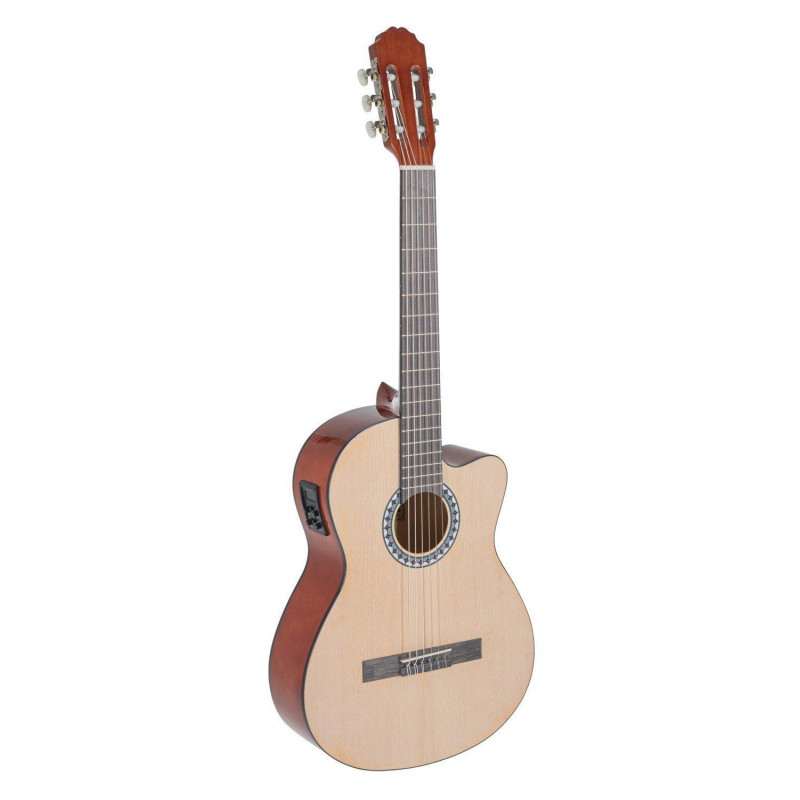 Tampo em Spruce. Corpo em Basswood. Encadernações em ABS. Escala e Ponte em Madeira Pakka. Trastes de Níquel. Afinadores Cromados. Acabamento em Verniz Ecológico de Alto Brilho. Design Cutaway. Captador Piezo. EQ 4 bandas e afinador.