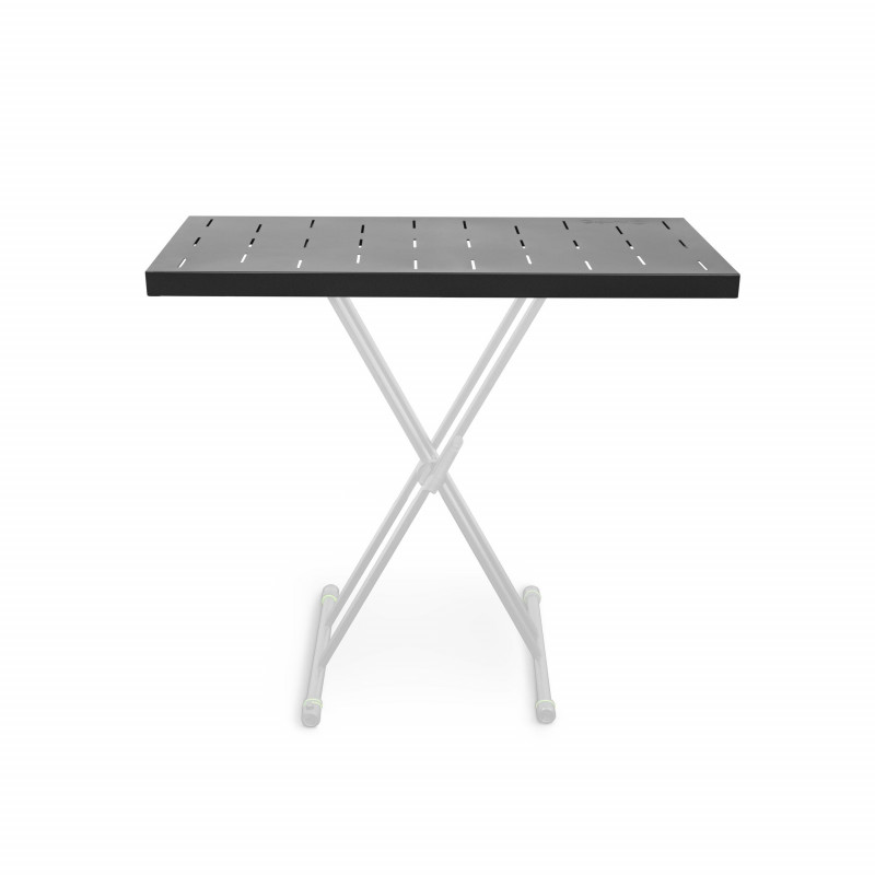 Se você é um DJ ou técnico de estúdio, certamente trabalha no laptop todos os dias. Nesse caso, temos algo para você: suporte ao GKSRD1 para suporte ao teclado, onde você pode colocar seus valiosos dispositivos de maneira estável, sem medo de que caiam. Como todos os suportes Gravity, este se destaca por sua construção extremamente estável e robusta. É feito de aço texturizado e, graças à sua superfície de 40 cm x 100 cm, oferece espaço suficiente para praticamente qualquer configuração individual. Seu peso poderoso de mais de 6 kg não apenas garante estabilidade extraordinária, mas também uma grande capacidade de carga de até 60 kg. Mas o mais surpreendente é que a estrutura em forma de tesoura suporta uma carga igualmente grande. O Gravity KSX2 é ideal para esse fim, por exemplo. Outro detalhe prático são as ranhuras na superfície do suporte para otimizar a ventilação de notebooks ou outros dispositivos que geram muito calor. Para montagem, basta inserir as barras superiores do suporte do teclado nos slots no centro da base do suporte e desdobrar o suporte. Não há necessidade de consertar ou parafusar o suporte de qualquer outra maneira.