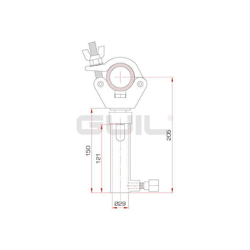 - É equipado com um tubo de aço cilíndrico para inserir um adaptador de 28 mm (ADT-21), equipado com um botão de metal ergonômico para fixar a carga.