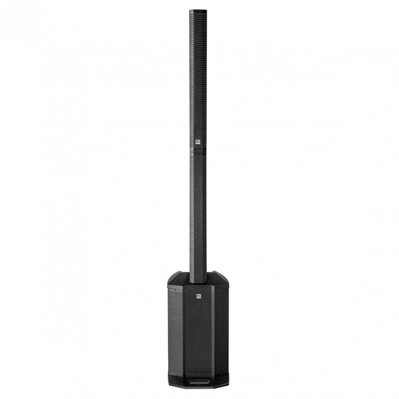 SISTEMA DE COLUNAS Sistema de coluna compacto de 3 vias autoalimentado. Sistema modular composto pela coluna de médios/agudos e o módulo de subwoofer com conectividade Bluetooth 5.0. SPL máximo: 126dB Amplificador classe D com grande alcance dinâmico. Potência de pico: 2.000 W. Módulo de subwoofer: 1 x 10”. Unidade média/alta: 6 x 3" + 1 x 1". Resposta de frequência (-10 dB): 38 Hz – 20 kHz. Cobertura: 120° x 30°. DSP de 24 bits com 5 presets definidos pelo usuário via tela LCD. Madeira de bétula e caixa em ABS. Entradas: 2 x Mic/Linha, 1 x Instrumento, 1 x Auxiliar (2 x RCA)/Bluetooth. Altura total do sistema: 213 cm. Peso: 26,9kg.