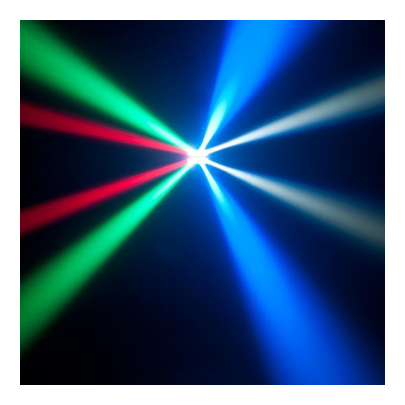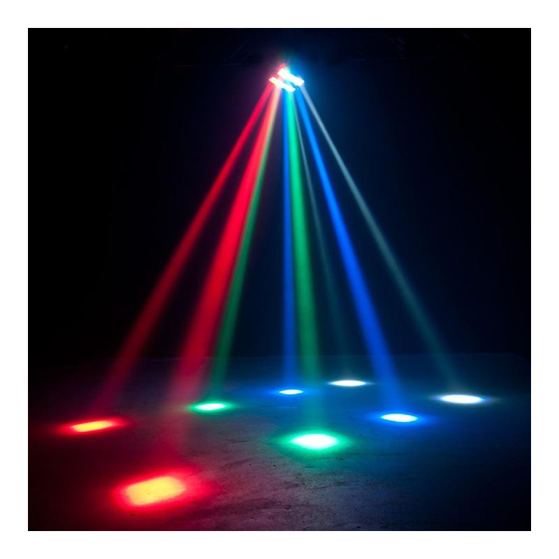 Efeito de iluminação de duas barras individuais, cada uma equipada com 4 projetores LED CREE RVBB 3W.
