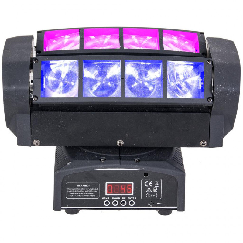 Efeito de iluminação de duas barras individuais, cada uma equipada com 4 projetores LED CREE RGBW de 10W.