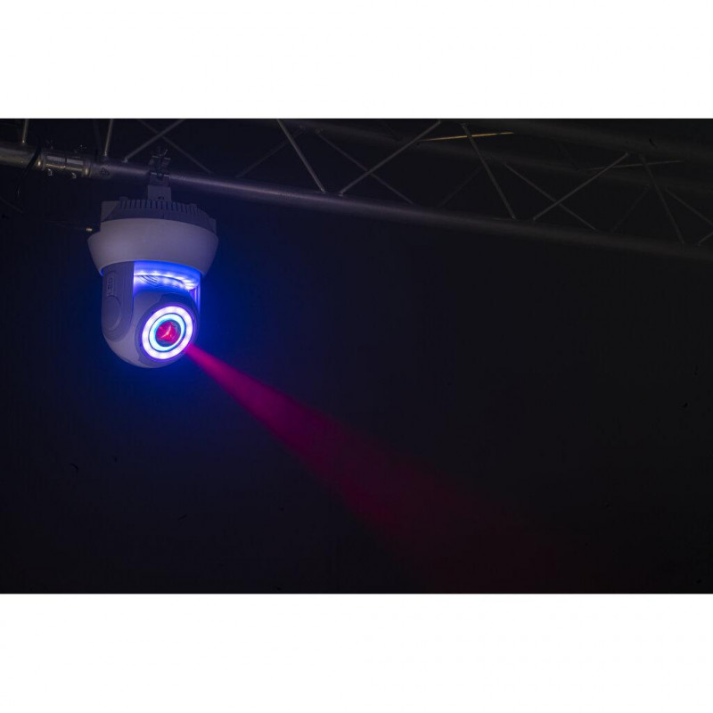 Design de cabeçote móvel e compacto, com acabamentos muito bons. Esta cabeça móvel compacta combina 3 efeitos de iluminação em um único dispositivo. Graças ao seu Spot central de 30W, a cabeça projeta Gobos multicoloridos potentes e precisos. Os 6 LEDs 4 em 1 RGBW criam um efeito Wash e também criam efeitos Show graças ao seu anel de luz. É pequeno, rápido, silencioso e poderoso. Este equipamento adapta-se facilmente a qualquer tipo de evento e aplicação.