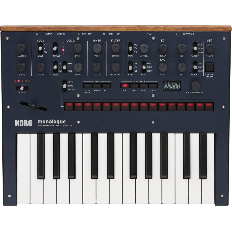 TECLADO DO SINTESIZADOR PROFISSIONAL Sintetizador analógico monofônico monofônico poderoso. 25 teclas, 100 programas, nova VCF de 2 polos, função DRIVE, novo LFO com mais faixa de frequência e profundidade, sequenciador de 16 etapas com 16 botões diretos no painel frontal, modo Micro-tuning desenvolvido em colaboração com Aphex Twin. Disponível em 5 acabamentos: prata, preto, azul, ouro e vermelho.
