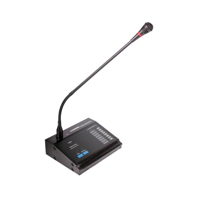 ACESSÓRIO DE SOM INDUSTRIAL Mesa de paging remota microprocessada com seletor de 8 zonas para controlador MX-880. Podemos aumentar o número de zonas com os módulos expansores MX-880E. Microfone de eletreto unidirecional. impedância 600Ohm balanceada. Faixa de frequência 50-18KHz. Seletor de 8 zonas e chamada geral com led para indicar ativação. Barra de led para visualizar o nível de saída de áudio. Controle de volume do microfone e da campainha. Chime interruptor 2-3-4 tons. Conector RJ45. Comunicação RS485 até 50 metros com alimentação interna e mais de 50m. com alimentação externa. Alimentação através de seu conector RJ45 ou por fonte de alimentação externa de 24 VCC (inclui fonte de alimentação). cor preta. Dimensões: 180 x 145 x 58 mm.