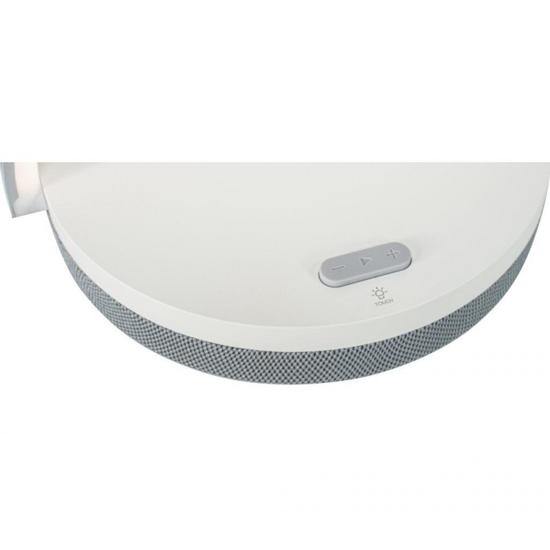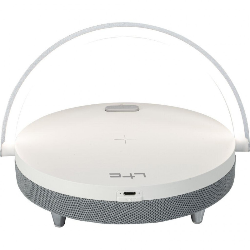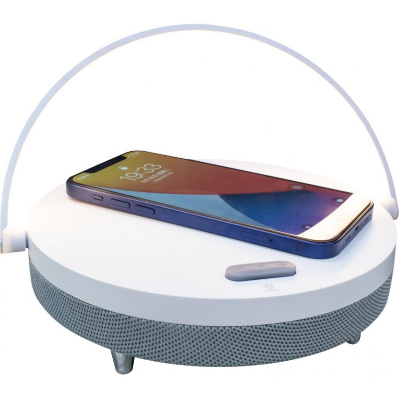 Toque em sua superfície para ativar a iluminação branca neutra contida no arco e altere seu brilho a cada toque para usar como luz noturna ou abajur. Conecte-o através do conector USB a um adaptador AC para carregar a bateria, mas também seu smartphone por indução, colocando-o na parte superior.