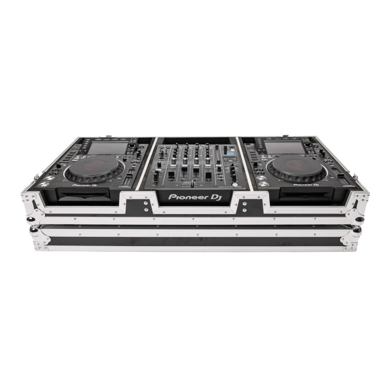 Flightcase para transporte e armazenamento de 2 players e 1 mixer. Construção robusta em compensado laminado de vinil de 9mm. Perfis de alumínio sólido e travas de mola. Espuma adicional para vários modelos de mixers e CD players. 3 tampas removíveis do painel frontal. Portas de acesso a cabos convenientes. Interior totalmente acolchoado. Inclui rodas embutidas para fácil transporte. Compatível com Pioneer DJM-900 NXS2 / 900 NXS / SRT / 800/700/600, CDJ-2000NXS2 / 2000NXS / 900/850/800 e XDJ-1000, Allen & Heath PX5, DB4, DB2, Xone 92/62/43C , Denon SC-6000 / 6000M / 5000 / 5000M / 3900/2900, Denon 5x56x24,5cm. Dimensões internas: 39,5 x 32 x 8,4 cm (player) / 43,8 x 33,1 x 8,4 cm (mixer). Peso: 20kg.