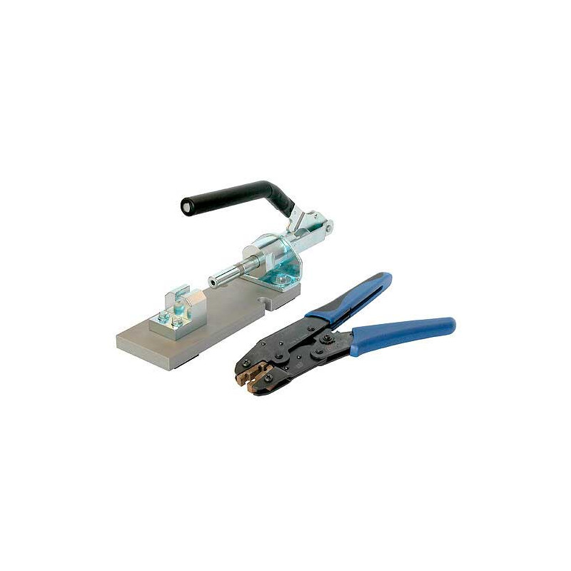 A ferramenta de montagem HX-TT-1 consiste em uma ferramenta de crimpagem e uma ferramenta de prensa para montagem de soquetes NP3TT-1-* e NP3TT-AU-*.