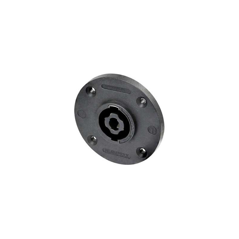 'Este conector está em total conformidade com a norma de dispositivos IEC 62368-1, devido à certificação de seus componentes de acordo com IEC 61984. Conector de chassi de 4 pólos, com flange redonda tamanho G na cor preta, furos escareados, terminais planos de 3/4" 16'' Os conectores de montagem em painel .speakON são os conectores de chassi padrão para interconexões de alto-falante/amplificador. Eles apresentam um sistema de travamento metálico exclusivo, que estabelece contato somente quando totalmente travado. Os receptáculos speakON são robustos, versáteis e fáceis de terminar.'