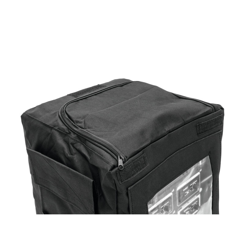 A bolsa de proteção para o sistema de PA modular MOM-10BT4 da OMNITRONIC é feita de tecido sintético preto durável.Por causa da frente feita de tecido de malha permeável ao som, a caixa pode permanecer na proteção A bolsa do alto-falante também possui uma abertura para a alça de transporte e os compartimentos de armazenamento para seus acessórios, como microfones e cabos.